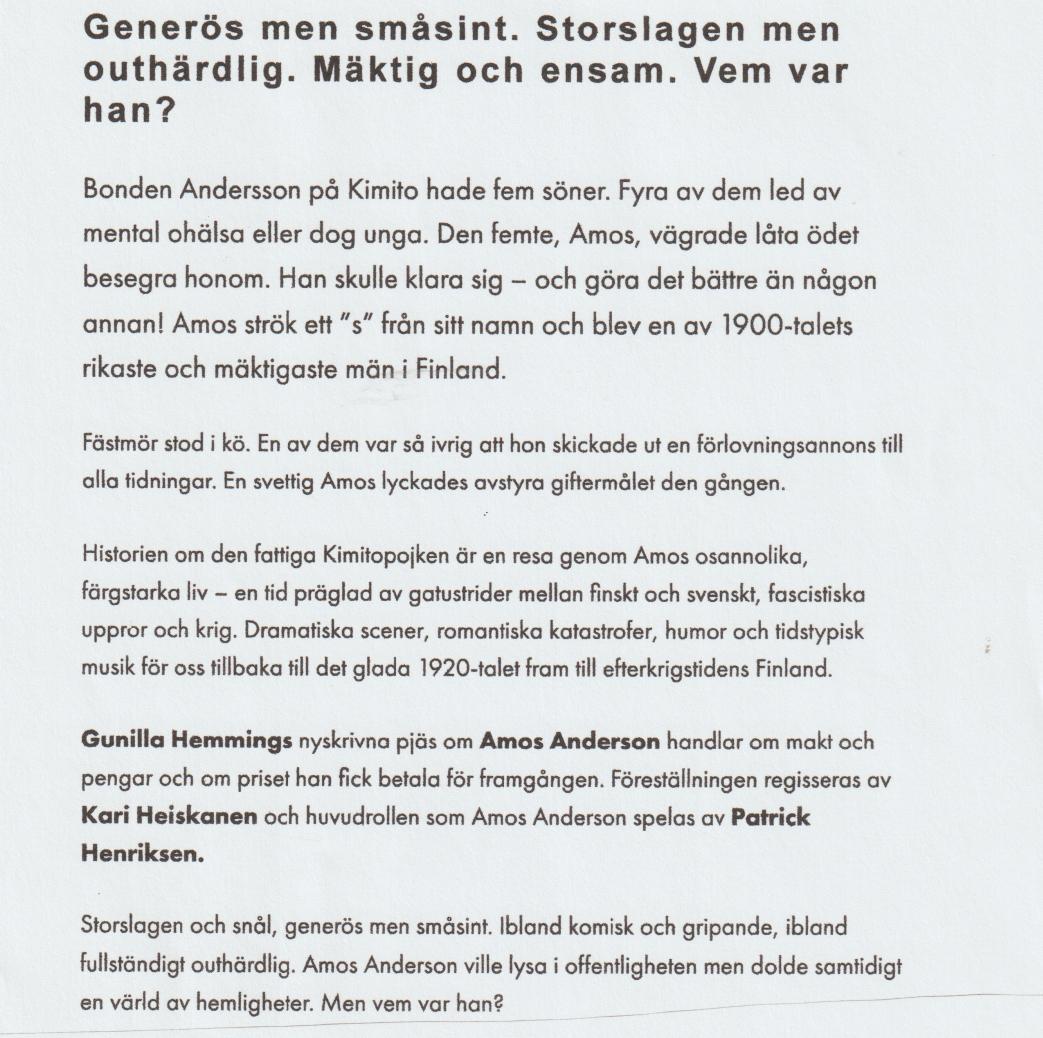 Amos A Svenska Teaternissa torstaina 13.11.2025 kello 12.00