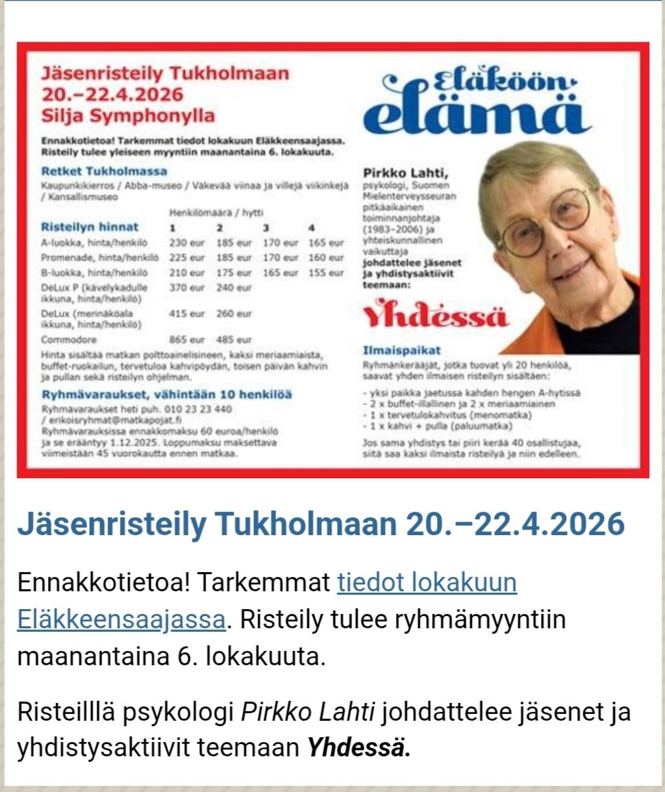 Lisätietoa risteilystä ja ilmoittautumisista lokakuussa.