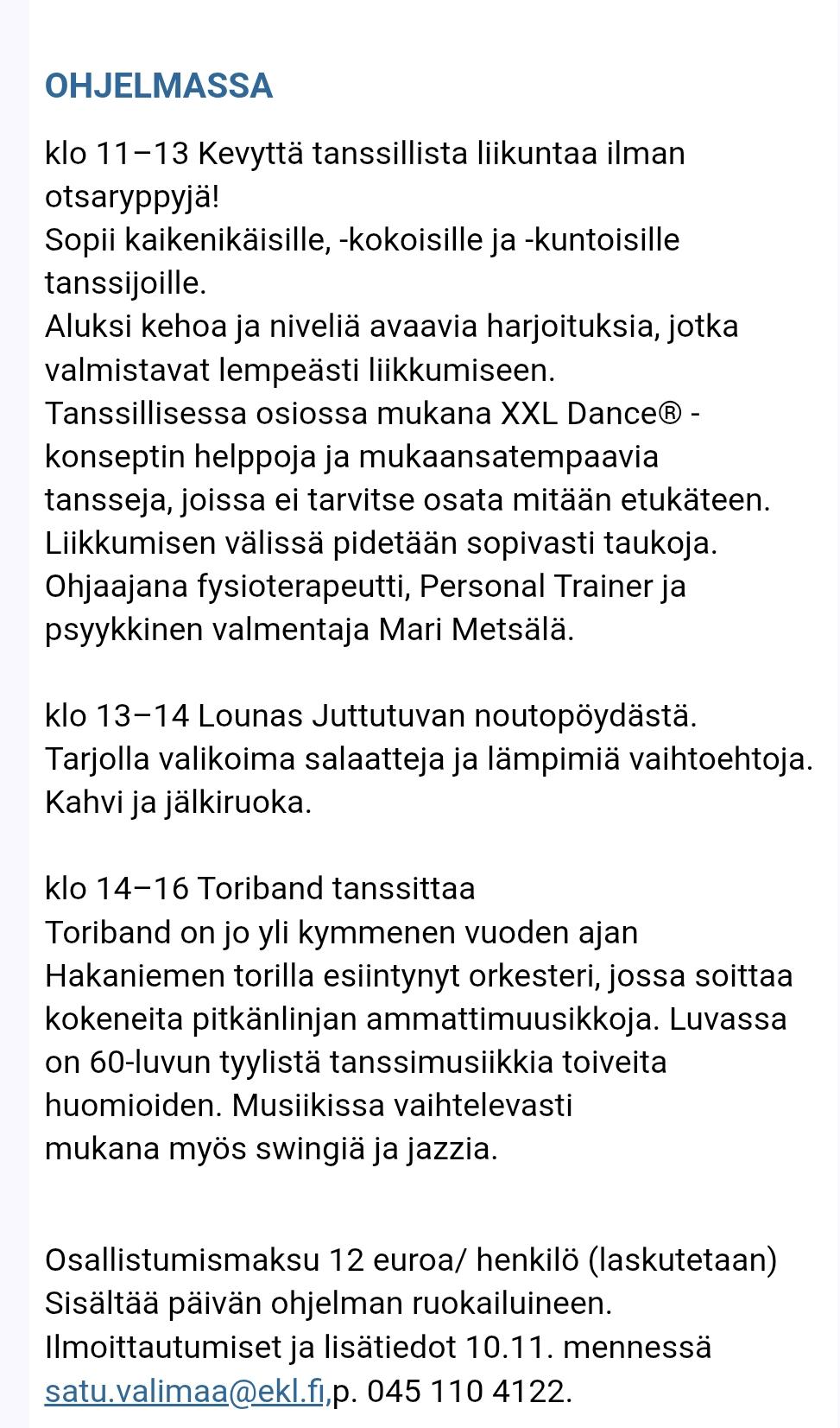 Ilmoittautumiset viikkotapaamisessa tai sähköpostilla anita.ikonen01@gmail.com