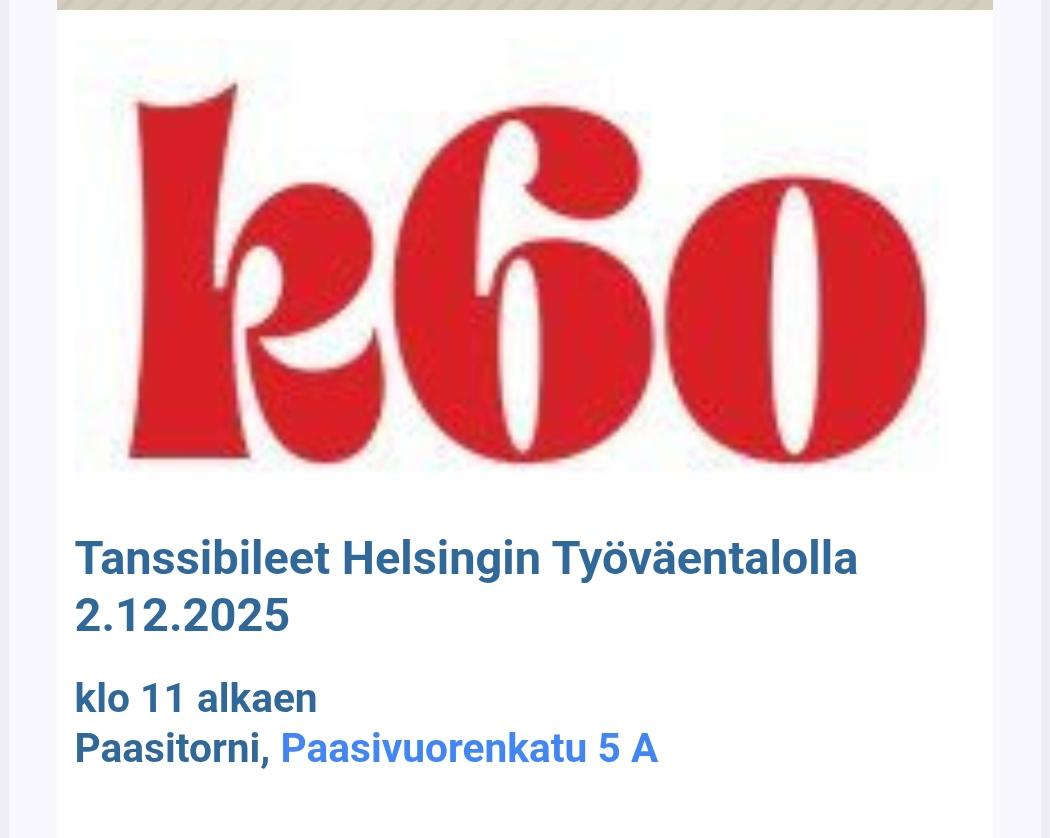Lipun hinta 38 euroa maksettava viimeistään 20.10.2025 yhdistyksen tilille FI61 1290 5000 1067 38 viitenumerolla 3104